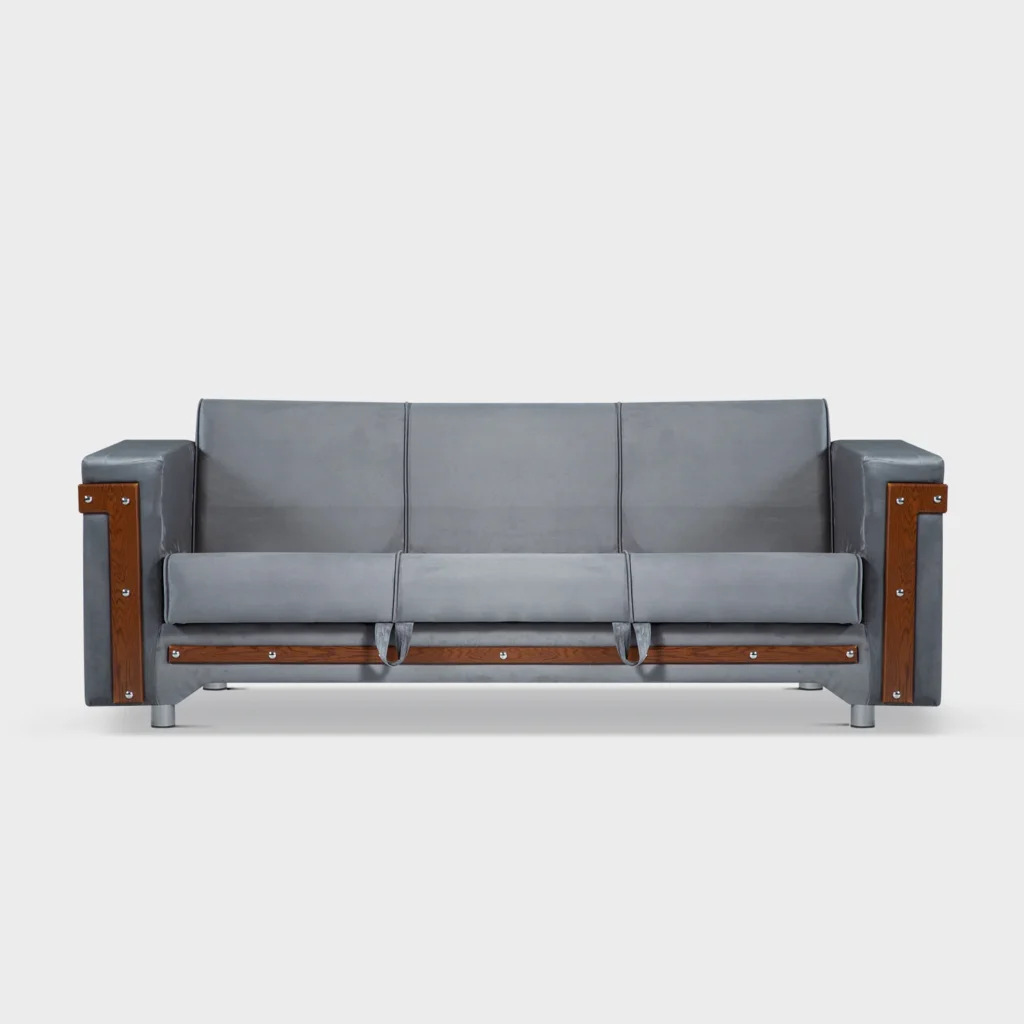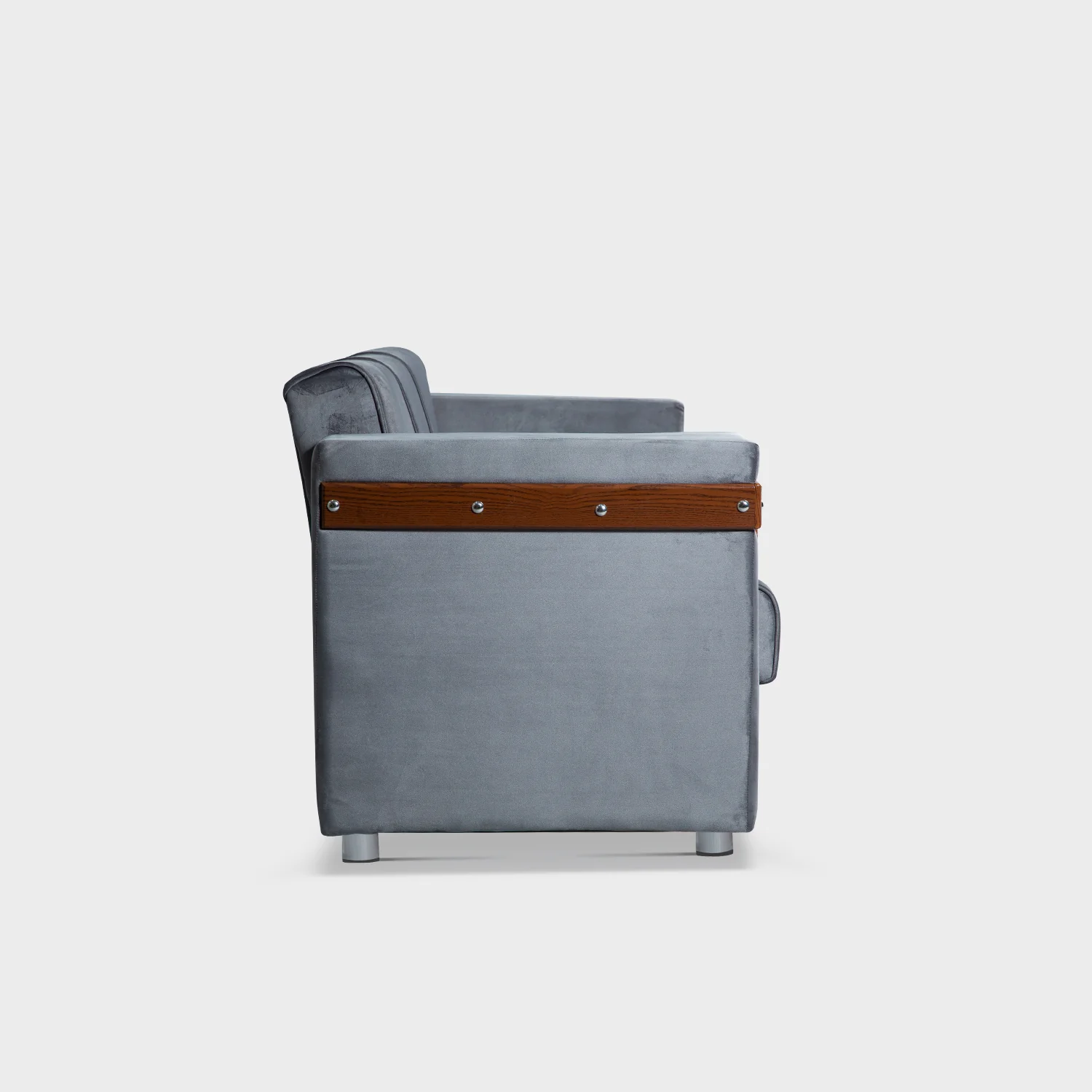 A modern design that thoughtfully incorporates straight wooden lines to anchor charm and style for a cohesive look. It is complemented by silver circular buttons to add a hint of embellishment to your living space. Providing impeccable comfort, this refined sofa cum bed infuses your room with irresistible energy while paying extra attention to quality and comfort that serves as an essential spot for you to sit, relax or enjoy.