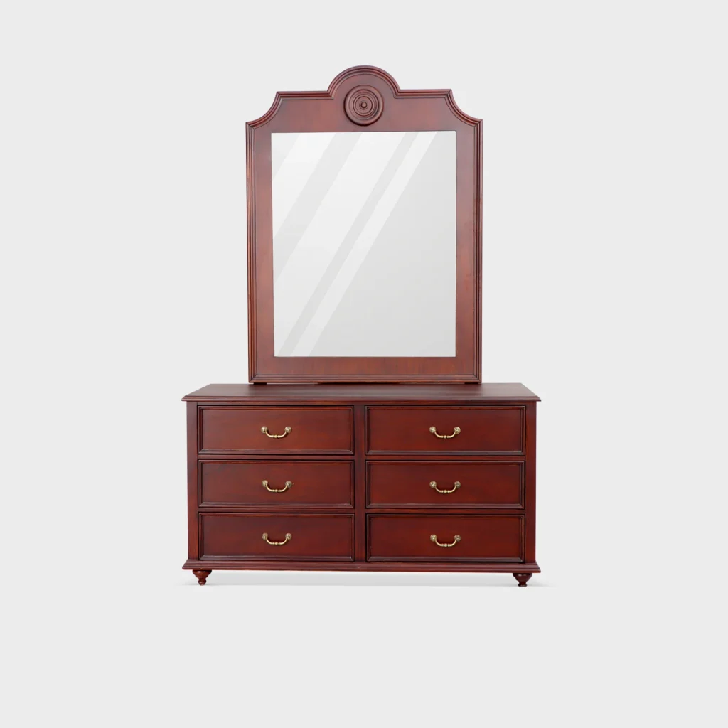If you are in search of ample storage space in a design that’s timelessly classic, our Sleigh Dresser could be your ultimate pick. Subtle design details are beautifully highlighted through curves on the edges. Made in high-quality Rose Wood that features darker brown finish. It is sturdy, bold, and beautiful. Its wood properties not only make this dresser durable but also resistant to termite attack. Six drawers feature vintage gold pulls to cinch the whole look together. Pair this with our Sleigh bed to spruce up your space!
