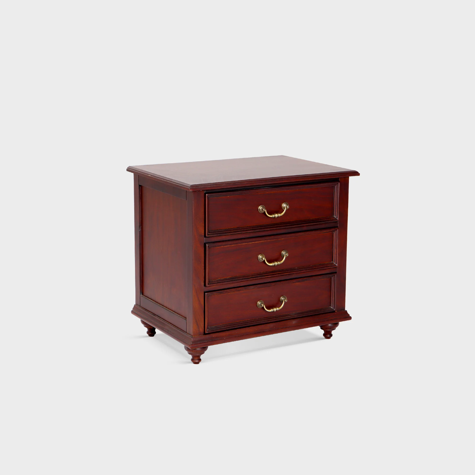 Made in high-quality Rose Wood that features a darker brown finish, our Sleigh side table can be the perfect choice for a minimalistic design neutral interior. It is sturdy, bold, and beautiful to feature vintage gold pulls to cinch the whole look together. Its wood properties not only make it durable but also resistant to termite attack. Balance your room and add some symmetry with our Sleigh side tables!