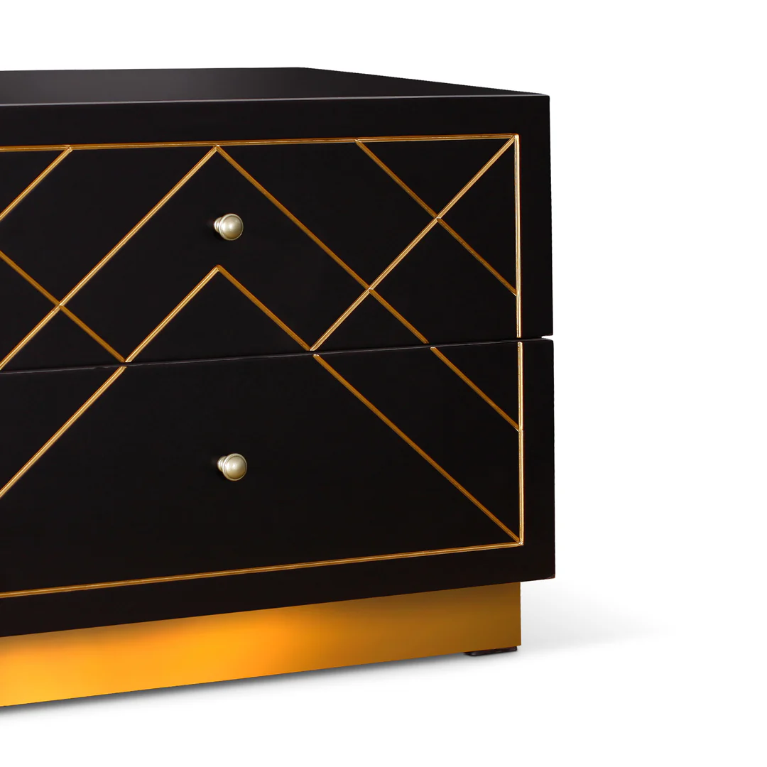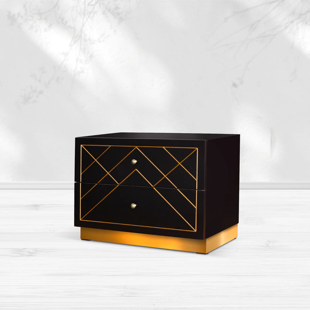 The Winsome side table boasts a sophisticated design with fine ingrained golden lines making a geometrical pattern and adding a touch of regality to the look. This side table offers generous space to store your belongings and gifts your ultimate grace.